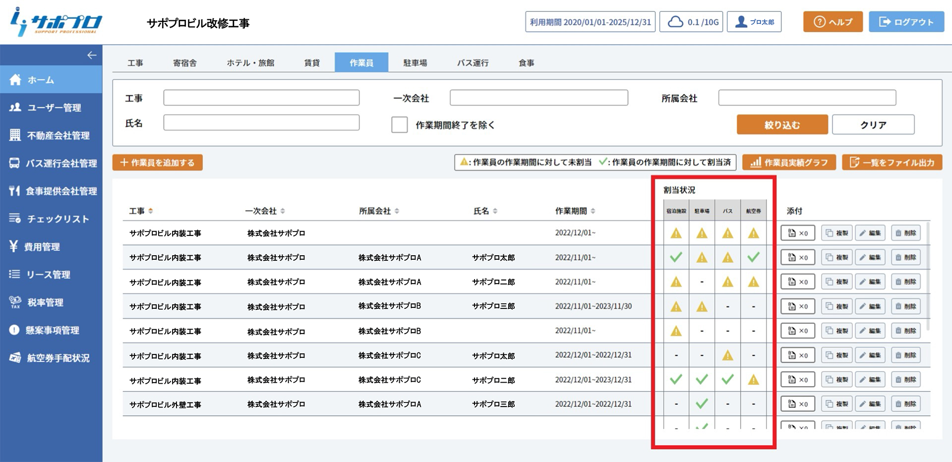 工事終了まで宿泊手続きや精算業務などを包括管理いたします。